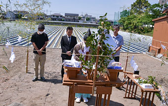 地鎮祭施主様が一生に一度の住まいを建てる時と同じように、地鎮祭には鍬入れをし、上棟式には建物の完成を祈り、当たり前のことを当たり前に、一工程ごと丁寧に進めています。