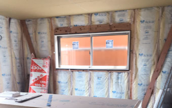 造作工事屋根工事や外壁工事と同時に断熱材を隙間に埋めていきます。壁や天井の下地工事に入ります。天井下地が終わると、床材や天井ボードを施工していきます。