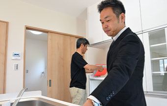 僕自身が施主になりきって建てます。気心しれた建築会社に施工を頼んでいます。毎回コンセプトを伝えて、相談しながらチームで取り組んでいます。専属の一級設計士の方は、家事動線や収納のことももよく考えてくれます。地鎮祭や上棟式も、いい日を選んできちんと行っています。上棟の時は、どんな家になるのか想像するだけでワクワクします。僕が一番こだわっているのは床。玄関を入ってまず目につく床の第一印象を大切にしています。グレードがいろいろあるのですが、高級なものはやはり美しいです。システムキッチンや浴室などの設備仕様にも一流メーカーを採用。照明やカーテンレールなども取り付けています。僕がこだわった部分に、お客さんがそこまで考えてくれてありがとう、と言ってくれます。お陰さまで在庫はありません。僕の主観で注文した建売住宅を気に入ってくれるお客さんがいることに感動します。